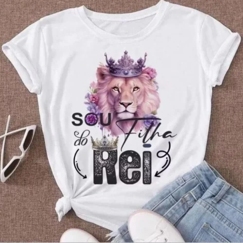 Kit 3 Tshirts blusas Jesus perolas + Leao Yeshua + Filha do Rei feminina evangélica 100% algodão