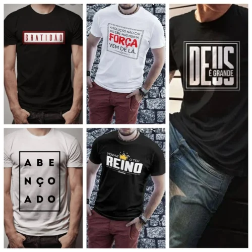 Kit 5 Camiseta Masculina 100% Algodão Fio 30.1 Camisa Blusa Fé Gratidão Jesus Abençoado Evangélica Gospel Religiosa